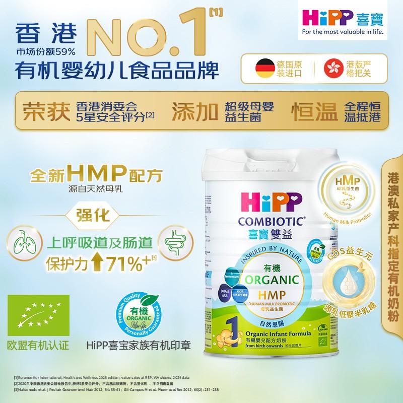 【买赠】港版HiPP喜宝有机双益HMP婴儿配方奶粉1段800g 0-6月