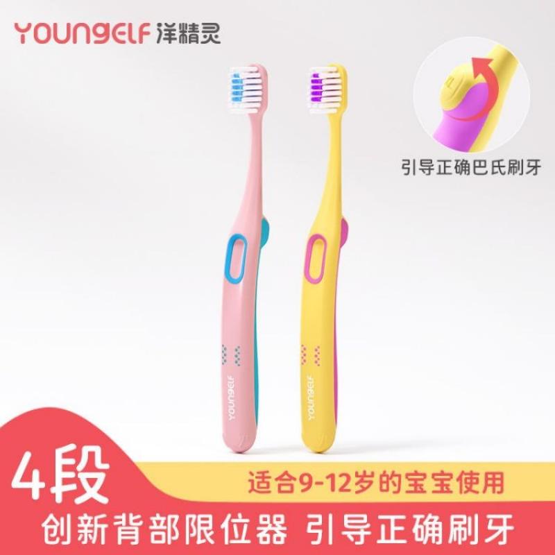 国内发货 洋精灵4阶段混牙期儿童成长牙刷—山茶粉/枫叶黄 9-12岁(两支装)