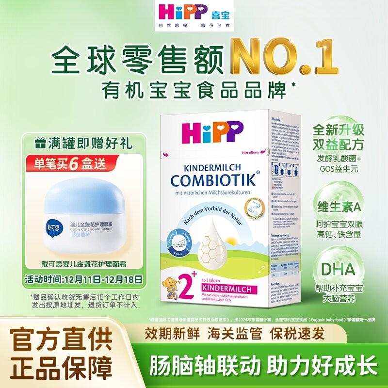 【6盒满赠】德国HiPP喜宝益生菌配方奶粉 2+段 2岁以上 600g (新包装)