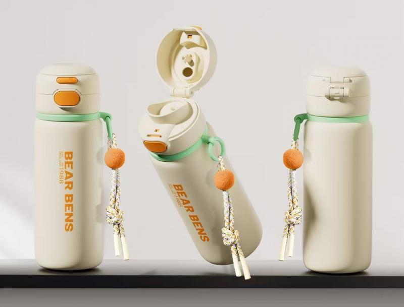 熊本士时尚5D款不锈钢双饮保温杯 橙香椰奶 500ml学生杯